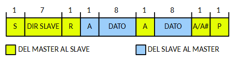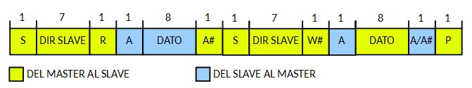 - Después de la condición Start si la dirección del esclavo es repetida los datos pueden ser transferidos.