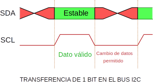 1de SCL le puede corresponder un estado estable0o1de SDA en función de la información del bit que se envíe.