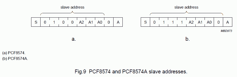 0x20 a 0x27en el PCF8574 y de0x38 a 0x3Fen el PCF8574A. Es decir, podemos poner en el mismo bus 8 PCF8574 y 8 PCF8574A.
