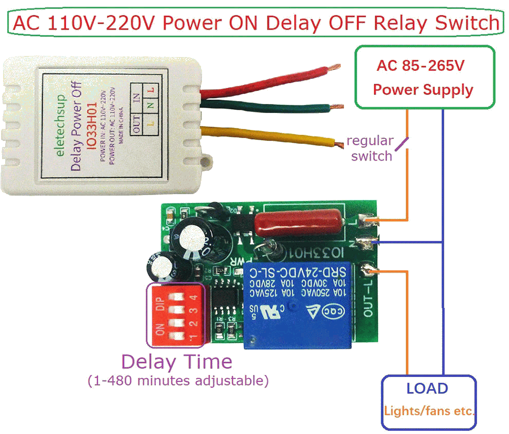 - Temporizador que mantiene conectada una carga un tiempo prefijado mediante 4 microinterruptores una vez cerrado un interruptor de encendido.