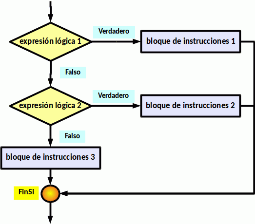 - En caso de que todas las expresiones lógicas sean falsas se ejecutará el último bloque.