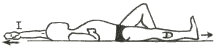 Decúbito lateral izquierdo, cojín semiduro bajo el tórax,  piernas extendidas, el brazo izquierdo estirado bajo la cabeza, la otra mano por encima del hombro; inspirando profundamente extendiendo el brazo derecho por encima de la cabeza buscando el tocar con la mano el punto más lejano.