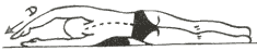 Decúbito dorsal, rodilla izquierda flexionada y la rodilla derecha extendida, la mano derecha junto a la cadera y la mano izquierda extendida  por encima de la cabeza. Realizar un estiramiento simultáneo del brazo izquierdo y de la pierna derecha.