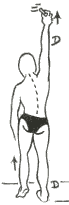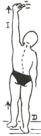 De pie sobre la pierna derecha, frente a la pared, trozo de tiza en la mano izquierda, tratar de trazar una raya lo más alto posible.