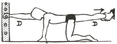 A gatas frente a la espaldera, brazo derecho extendido hacia  adelante, mano derecha cogida a un barrote. Extender la pierna derecha hacia atrás. El operador ejerce entonces una tracción sobre ella hacia atrás mientras el sujeto inspira profundamente. La cadera derecha no debe descender durante el ejercicio.