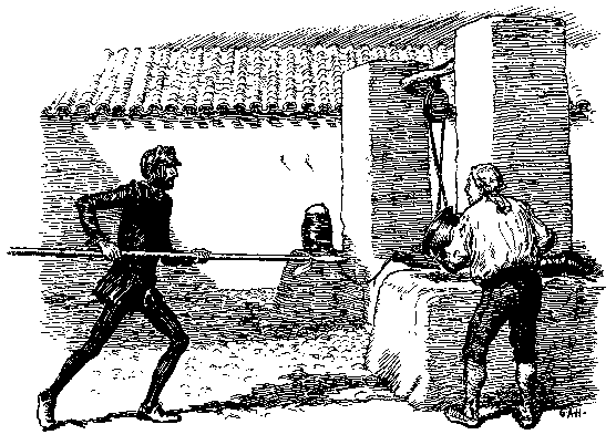 - Pero de vosotros, soez y baja canalla, no hago caso alguno: tirad, llegad, venid y ofendedme en cuanto pudiéredes, que vosotros veréis el pago que lleváis de vuestra sandez y demasía.