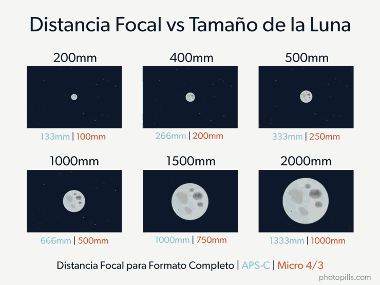 • Super teleobjetivo: Focales de 160 a 600 mm, ángulos de 10º a 2º.