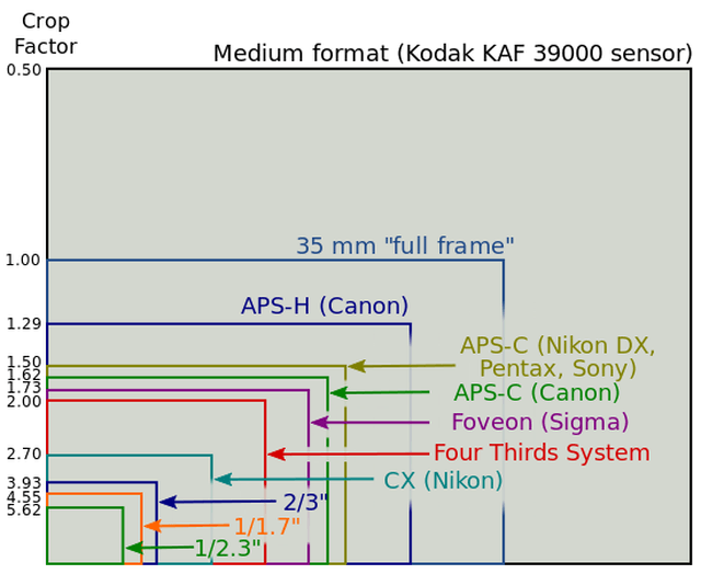Esto influirá, entre otras cosas, en el ángulo de visión obtenido con un objetivo determinado, pues su distancia focal efectiva variará de un tamaño de sensor a otro.