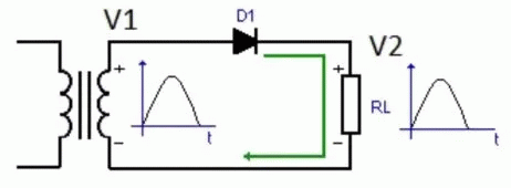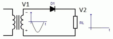 • Es el circuito mas simple y consiste en sólo un diodo conectado a la salida del transformador.