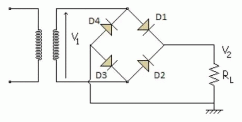 • Algo a tener en cuenta es que en este circuito, la corriente siempre atraviesa dos diodos y cada uno de ellos provoca una caída de tensión, con lo que la tensión disponible a la salida será menor que en el circuito anterior que usa dos diodos.