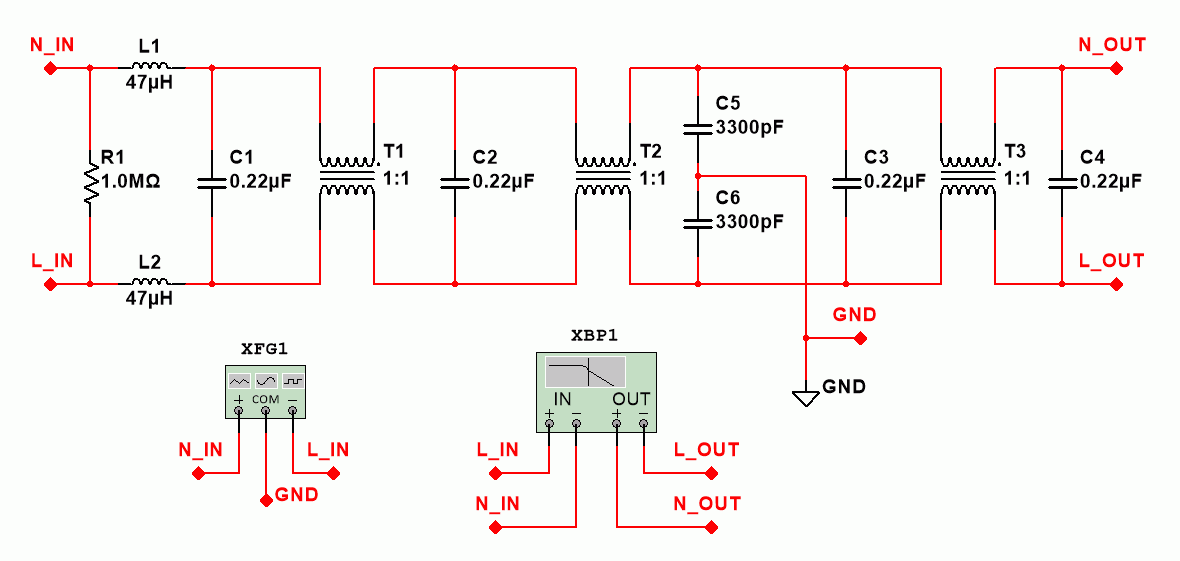 - 3) Tres juegos de filtros de modo común se combinan a través de condensadores X2 e inductores de modo común para formar un filtro de modo común. Debido al uso de filtrado de tres niveles, el efecto de filtrado del ruido es mejor. Para ciertos sitios de usuarios con interferencia de pulso de grupo transitorio rápido con una frecuencia de repetición de varios miles de hercios el problema de la perturbación puede tener un efecto supresor.