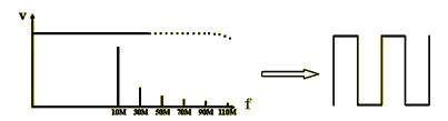 A continuación se muestra una señal de onda cuadrada de 10 MHz vista en un osciloscopio de 10 MHz y en uno de 200 MHz de ancho de banda. Se observa cómo el osciloscopio de 10 MHz atenúa los componentes de mayor frecuencia, distorsionándose la forma de onda tal como se ve en la primera imagen.