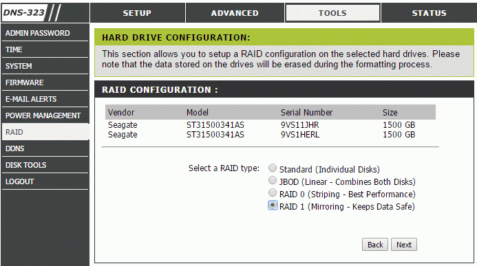 [DNS-323] Sistema RAID