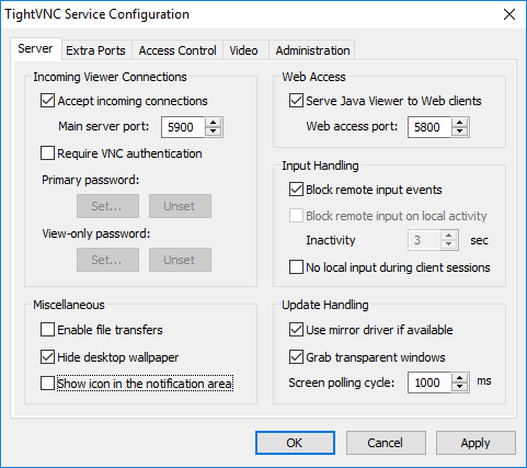 - Descargamos tightVNC y lo instalamos con las siguientes características: