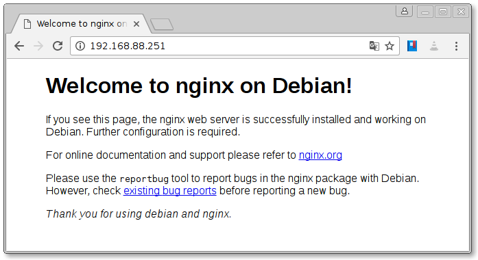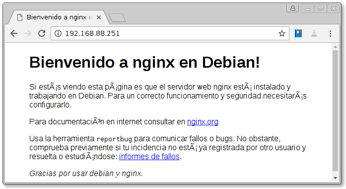 - Cogemos una máquina con un Debian mínimo instalado, e instalamos el servidor web NGINX
