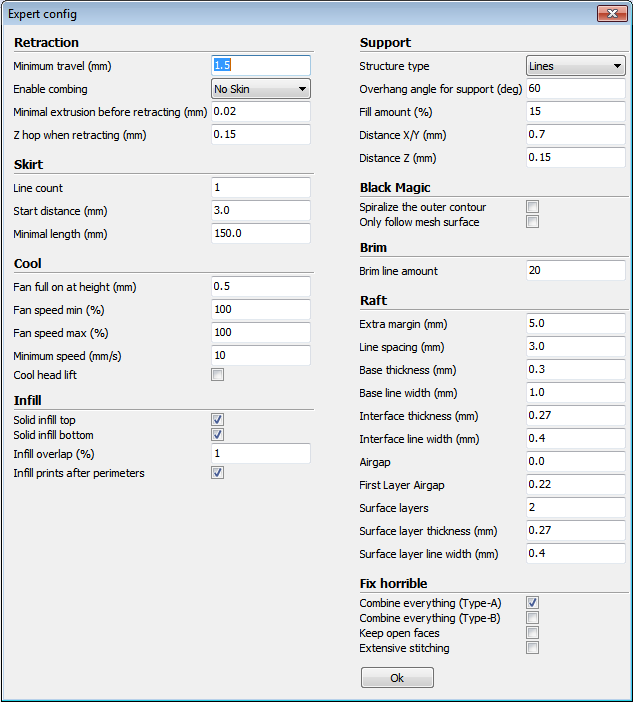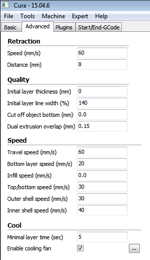 Ver la fuente de esta páginaRevisiones antiguasEnlaces a esta páginaExportar a PDFExportación a ODTVolver arriba Share via Share via... Twitter LinkedIn Facebook Pinterest Telegram WhatsApp Yammer Reddit TeamsImprimir × Público ⇒ Tecnología ⇒ Impresión 3D 4Max Pro - Ajustes en Cura para filamento flexible Básico Basic Avanzado Advanced Experto Expert → Open expert settings doc/tec/print3d/cura/4max_tpu/inicio.txt Última modificación: 2021/12/25 03:01por 127.0.0.1